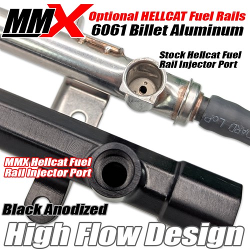 Check out our HIGH-FLOW MMX Hellcat fuel rails as the perfect complimentary product to make sure your supercharged HEMI Hellcat is getting every possible drop of fuel available from the pumps!