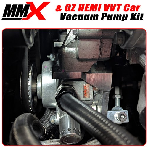 This kit is for serious N/A Gen 3 HEMI racers looking for maximum power. Please note this kit will get the vacuum pump mounted to your engine, but custom hose cutting/ assembly, and catch can routing is up to the end user. This kit works on 2011+ VVT CAR Hemi Timing Covers and mounts the pump in the factory A/C location. The 45 Degree fitting on the bottom of the pump allows for factory crossmember clearance in late model LX/LC/LD (CAR) platforms. Late Model Cars with single radiator fan will require the use of a double fan for adequate clearance to the crank drive mandrel. This requires PN MMX-ATI-15UD Dampener. Will work with other ATI Dampeners, but may require custom spacers for the front drive mandrel.