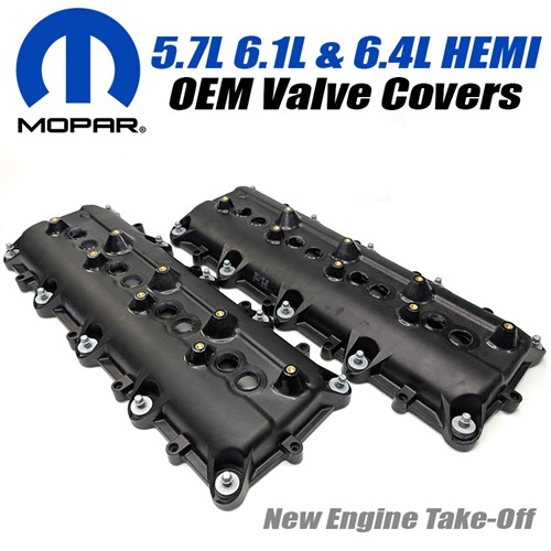 New OEM Takeoff MOPAR 5.7L, 6.1L, and 6.4L HEMI valve covers. These are great for 09+ VVT Head Swaps on 03-08 Blocks, or save big on an OEM replacement!